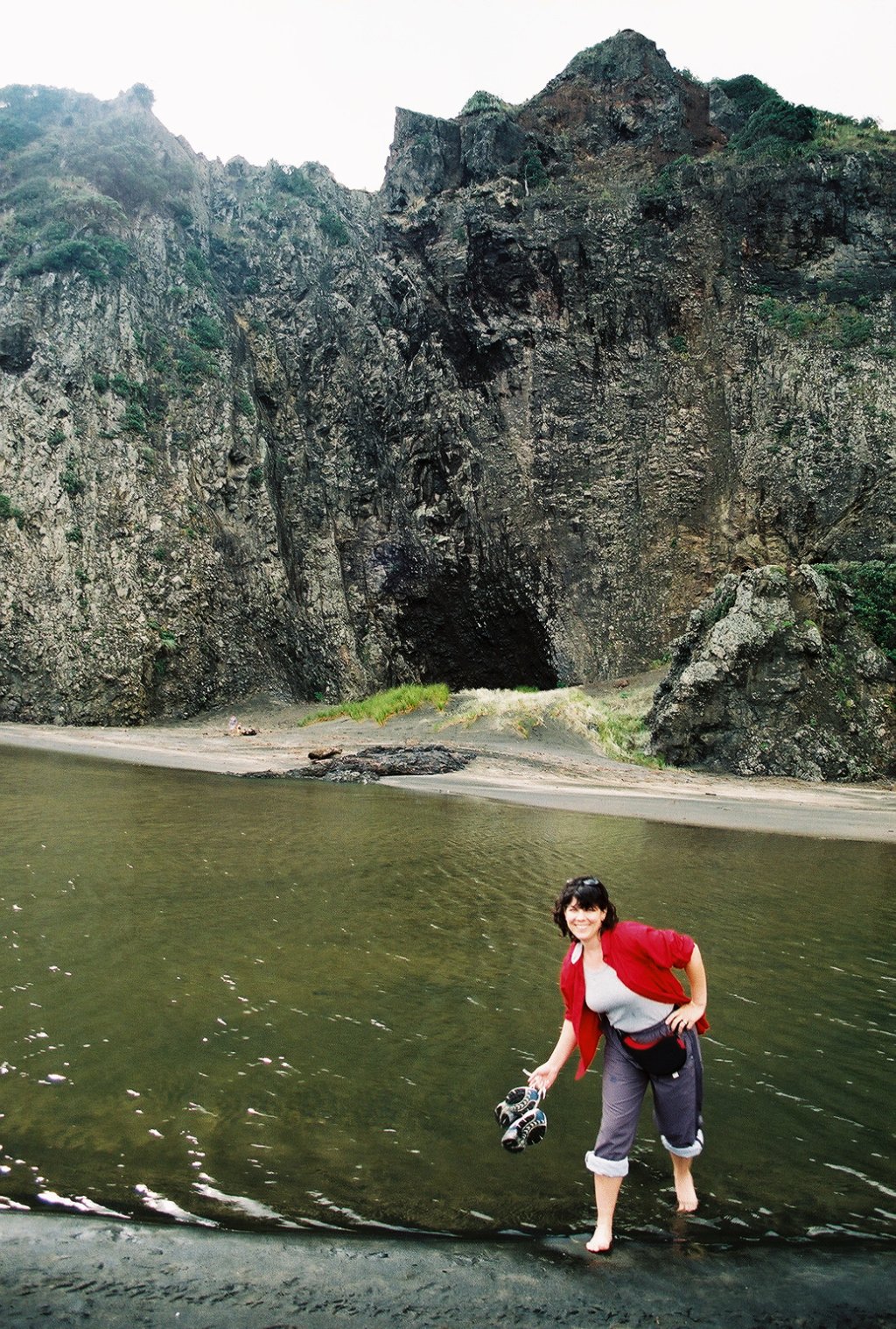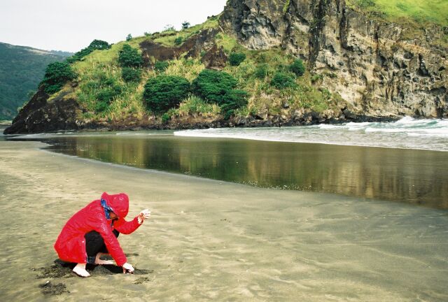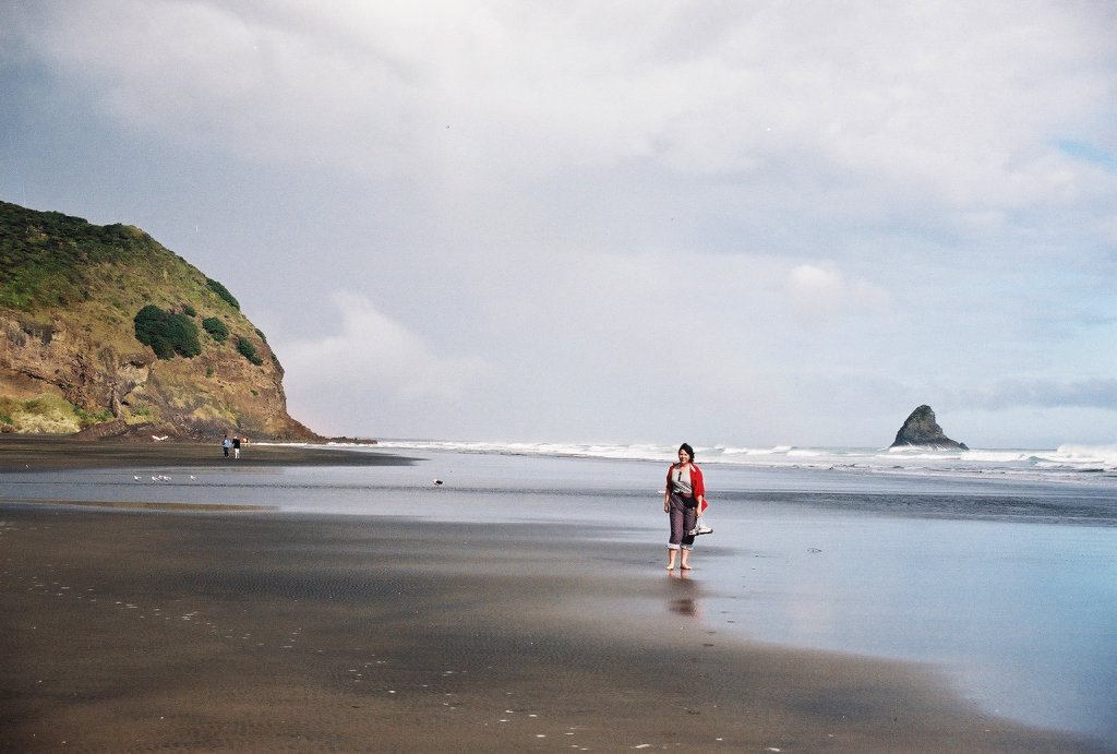Some scenes of "Xena: Warrior Princes" were shot on the beach at Piha, on the west coast south of Auckland. We didn't see Xena, but Jennifer strikes a good pose.