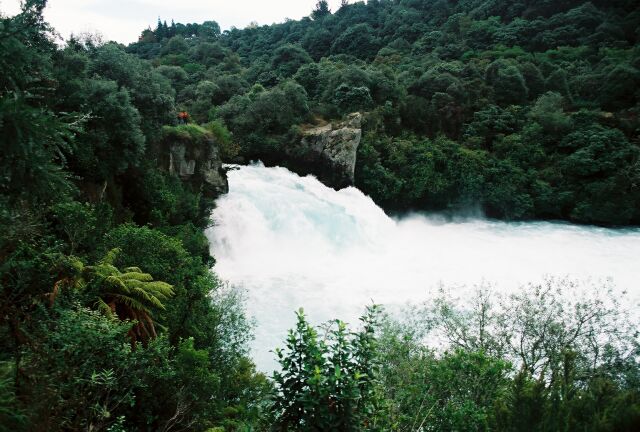 The entire 20 mile diameter lake drains through one narrow shoot at Huka Falls: