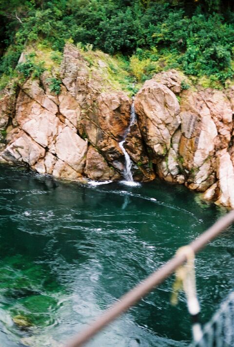 On down the west coast of the South Island on Highway 6. This would be one of the longer days in the car, but we always make a lot of stops. One of them was for a sign that said, "New Zealand's Longest Swing Bridge." We crossed a swing bridge on the Abel Tasman hike, and Jennifer, who is even more afraid of heights than I am, was just barely able to make it. Still, since Jennifer never wants to miss out on anything, I was sure she would go with me across "New Zealand's Longest Swing Bridge."